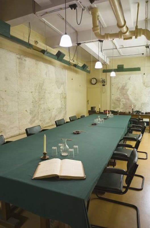 Sala delle Mappe: è il cuore del complesso, e tutto è rimasto com'era quando le luci vennero finalmente spente il 16 agosto 1945. Ci sono le mappe sul muro, su cui piccoli segnapunti indicano i progressi degli Alleati; i libri e i documenti impilati sulle scrivanie; perfino i cubetti di zucchero in una busta che si dice sia appartenuta al comandante John Heagarty.